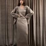 A comfy three piece set that features a cotton fleece cardigan, top, and skirt. The pieces allow you to mix and match for stylish options.